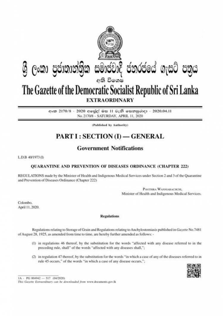 சுகாதார அமைச்சர் பவித்ரா வன்னியராச்சி இந்த வர்த்தமானி வெளியீட்டில் கையொப்பமிட்டுள்ளார் .